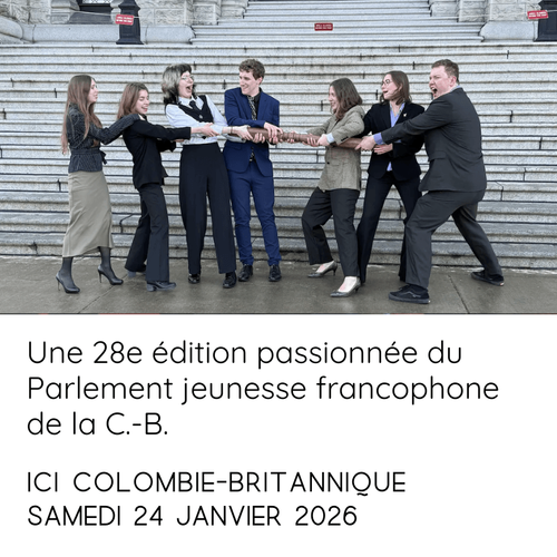 The 28th edition of the Francophone Youth Parliament of British Columbia took place from January 22 to 25, 2026. The PJFCB brought together 85 young people from across the province through its three streams: Delegate, Civic Action, and Media.